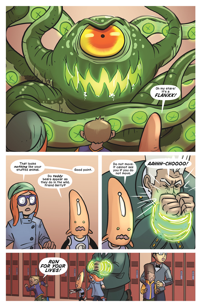 It has been several weeks since Albert left our planet, and life on Earth is quite different without him. The principal has been replaced by government agents. Robots are teaching classes. And Gerty has been obsessing over trying to get Albert to come home, completely unaware of the danger looming just a few planets away. While Albert has befriended other runaway alien kids on a planet, he quickly discovers this group is not exactly what they appear.