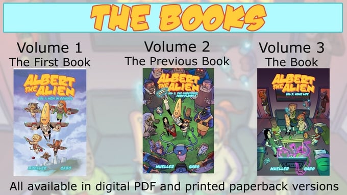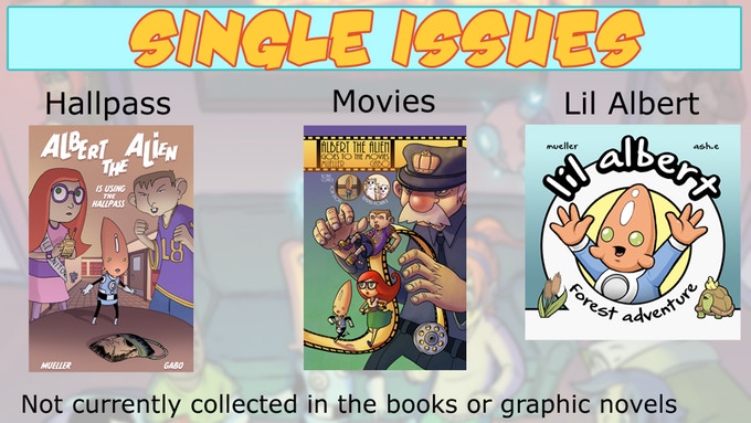 -- GRAPHIC NOVELS: Albert the Alien vol 1-4 -- SINGLE ISSUES: Hallpass and Movies